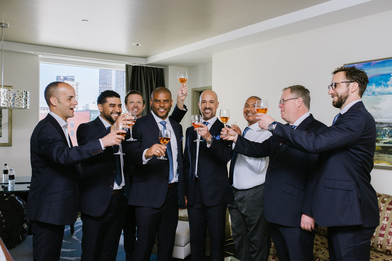 “Marc Nelson outfitted my crew as I walked down the aisle for a May wedding. My groomsmen came from all around the country, but Marcus made the custom design and fitting process as easy as one can ask for. I had ten individuals requiring suits, shirts, belts, pocket squares, and shoes and Marcus made it happen! Even though seven of my groomsmen did not arrive until the day before the wedding, Marc Nelson was able to complete all last-minute alterations necessary so everyone could have a smart fit. The suits were great, the look was fresh, and I couldn’t be happier about the service my guys and I received. I hope this is useful for anyone considering Marc Nelson as their wedding day outfitter.” -JMO