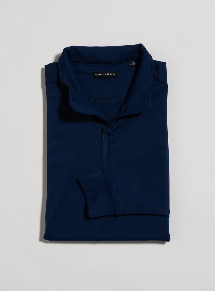 The Performance Quarter Zip Navy delivers lightweight comfort and modern style in a versatile pullover. Its breathable fabric wicks moisture to maintain a dry feel during activity or casual outings. Its flexible stretch adapts to dynamic movements. The floral collar and cuffed sleeves combine refined design with dependable performance.
