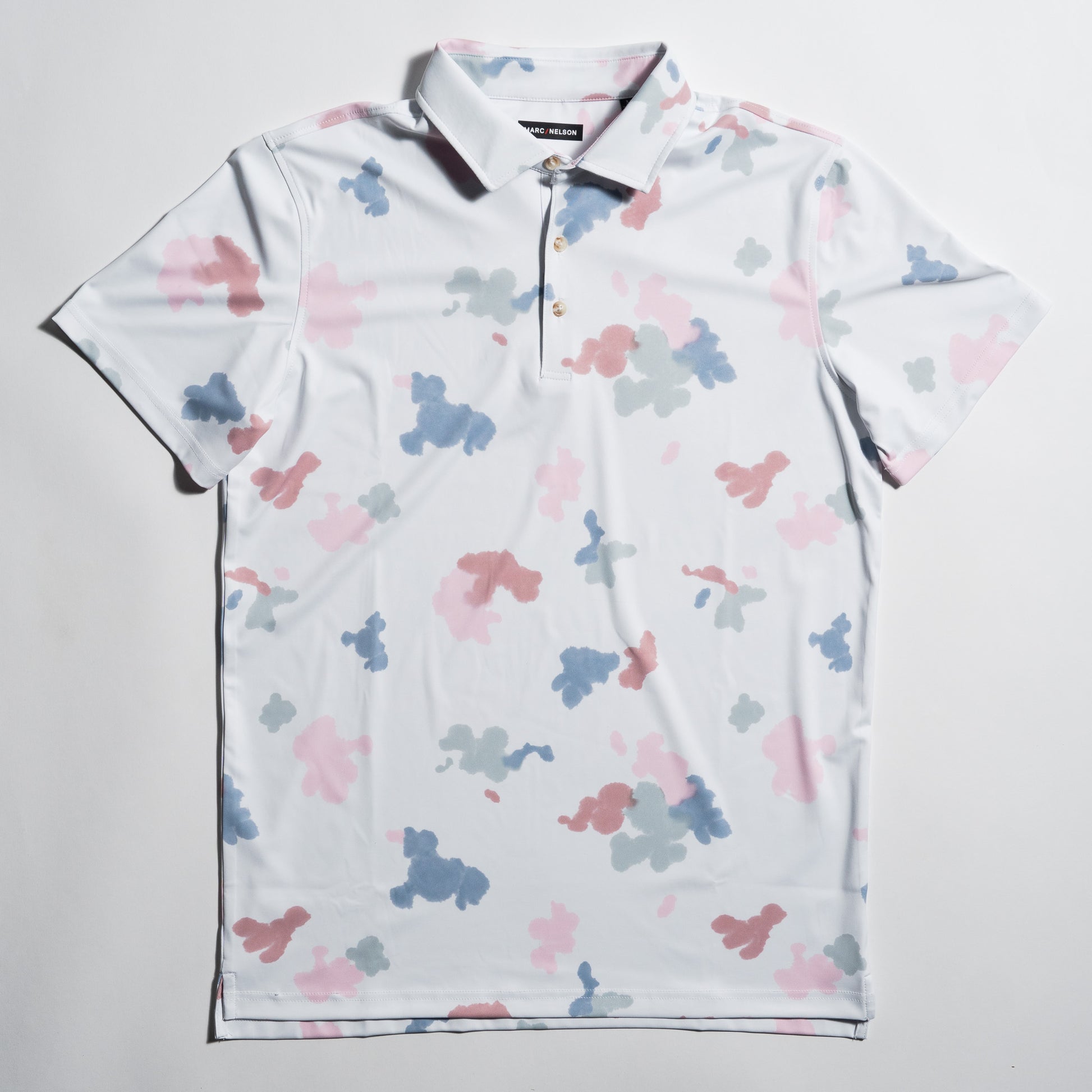 The Spring Splash Print Golf Polo has a splash of all spring colors in our collection. The polo combines moisture-wicking fabric, a tailored silhouette, and soft stretch to enable unrestricted movement with every swing. Holographic collar logo and shell buttons add refined style while four-way stretch material maintains shape and comfort. Simple care through machine wash with like colors and tumble dry low. Do not iron or dry clean.