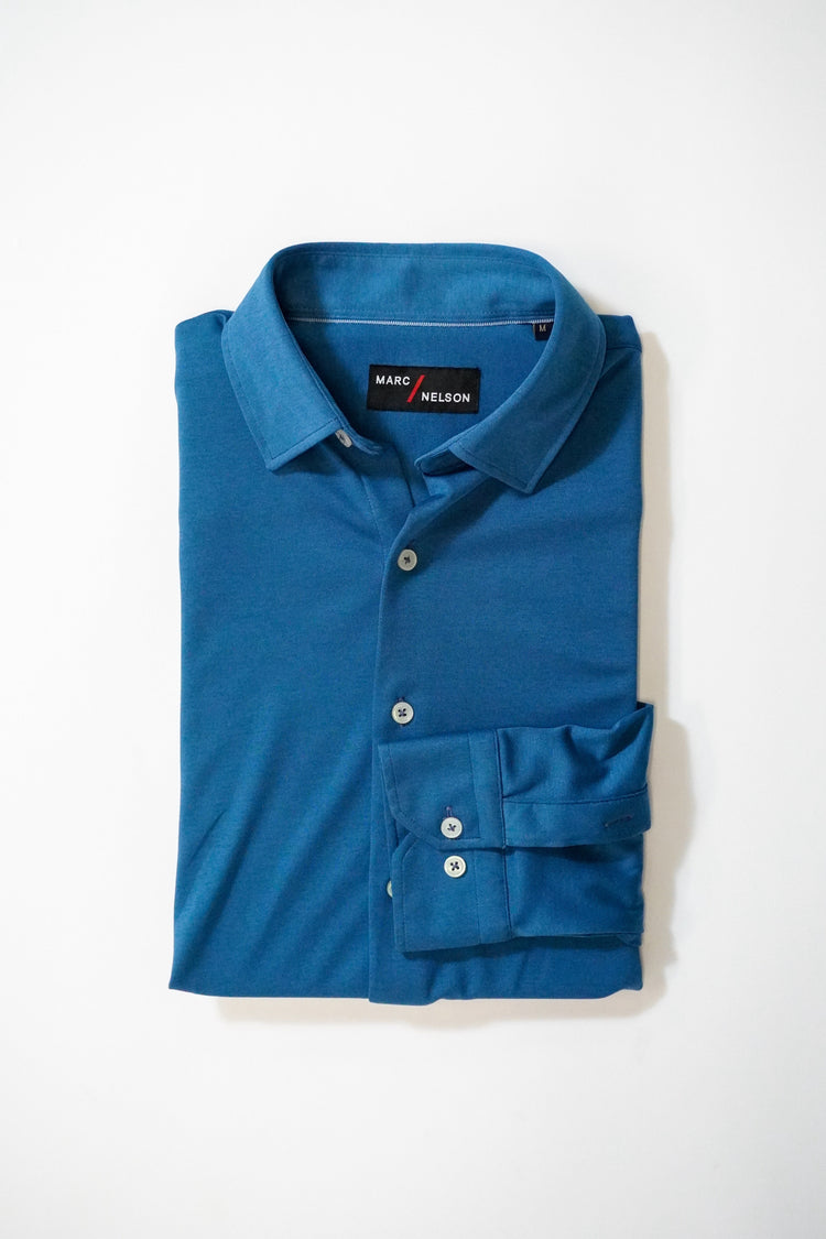 The Everyday Knit Ocean combines the cozy feel of a favorite tee with the structure of a button-up. Crafted in an ocean blue long sleeve knit, it blends softness and flexibility for effortless comfort. The relaxed fit supports natural movement during casual hangouts or laid-back office days. A button-up placket adds polish, while subtle ribbed texture provides dimension without bulk. Reinforced seams ensure durability through repeated wear, and the fabric layers smoothly under jackets or over tees.
