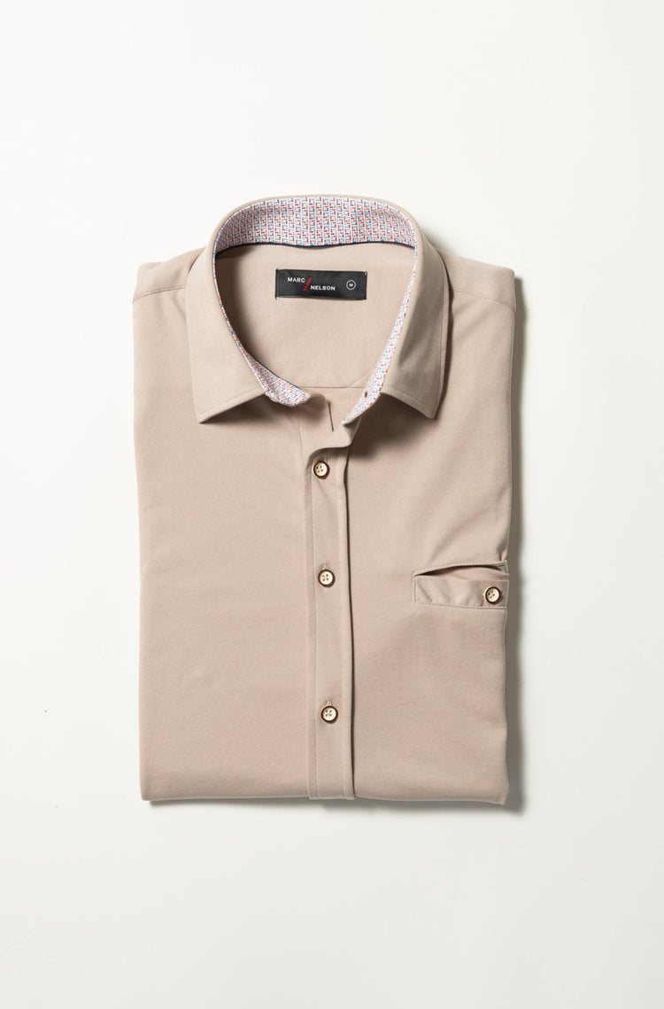 The Everyday Knit Short Sleeve in oat delivers effortless style and lasting comfort. It feels as soft as a favorite tee yet presents a crisp button-up front. A relaxed fit and flexible knit enable natural movement throughout the day. A printed inner collar and inside sleeve reveal a subtle accent that elevates this essential shirt. Lightweight fabric layers easily from morning meetings to evening events. Machine wash and tumble dry low-heat or hang to dry maintain its shape and softness through repeated wear. The neutral oat hue integrates seamlessly into any wardrobe, ensuring versatile pairing with existing staples. Thoughtful details support a refined appearance.