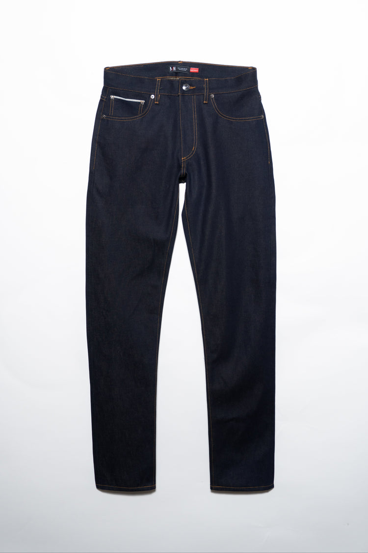 These men’s jeans use premium Cone Mills denim at 10.5 oz weight. They combine durability with a slim straight design and a four-button fly. Premium hardware ensures lasting closure and refined style. Each pair features a visible selvedge edge and reinforced stitching. Standard inseam is 34", with option to specify alternate length during checkout. Hemmed pants cannot be returned or exchanged.